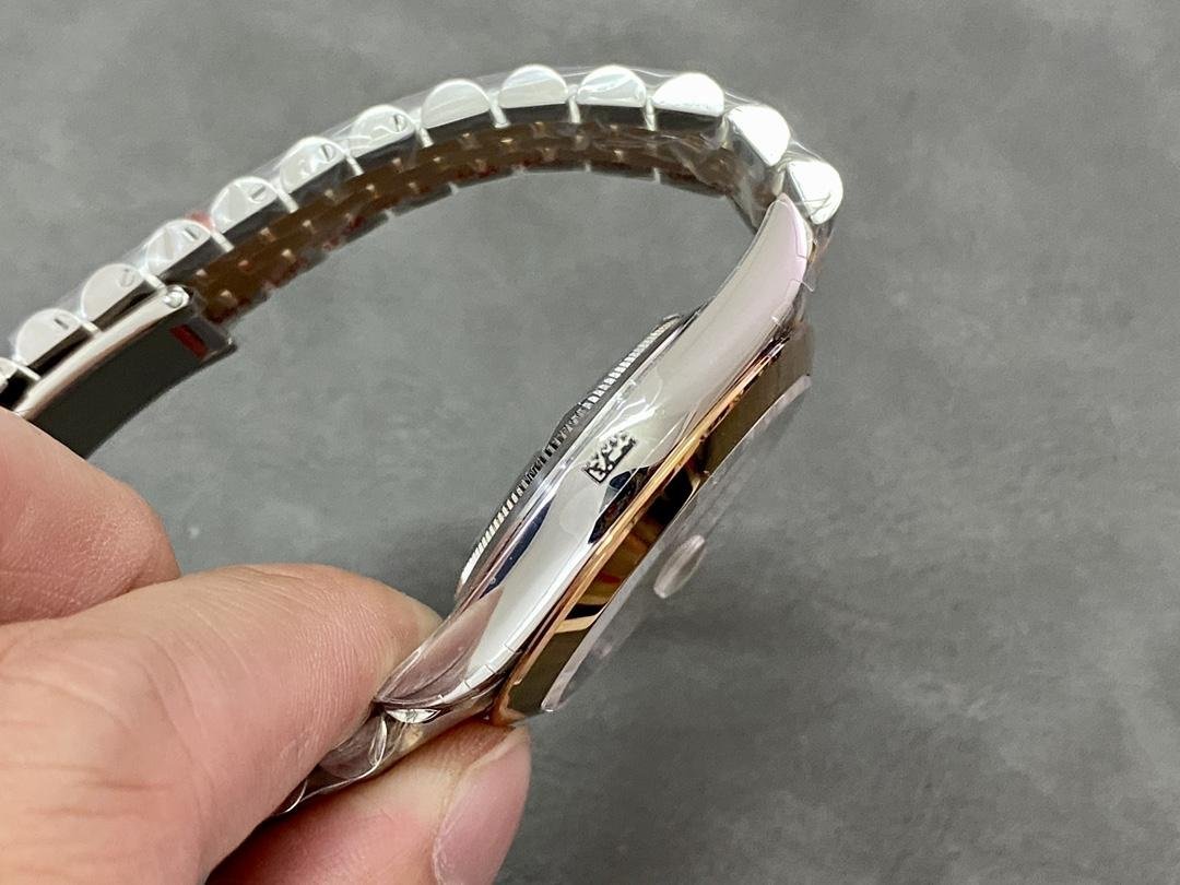 Rolex Datejust 126301 replica watch for men, Sundust dial with indexes, rose gold, 41 mm. 41mm Everose Rolesor case with monobloc steel case, screwed steel caseback, Everose gold screw-down crown, smooth Everose gold bezel, double anti-reflective scratch-resistant sapphire crystal with Cyclops lens on the date, Sundust dial with hour indices. Date at 3 o’clock that changes instantly to midnight in a few thousandths of a second. Everose Rolesor Jubilee steel and Everose gold bracelet with five-piece links. OysterClasp folding clasp with comfortable Easylink extension clasp.