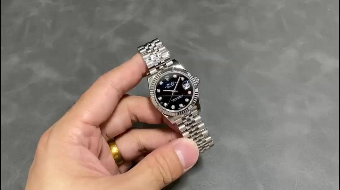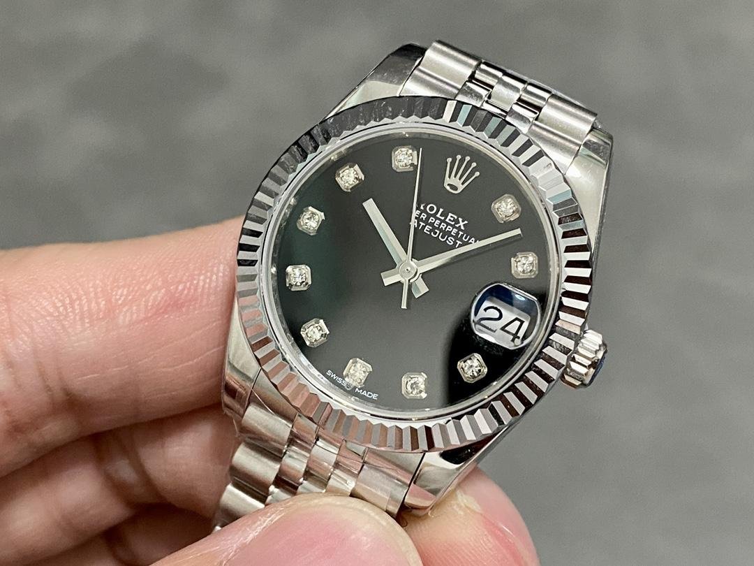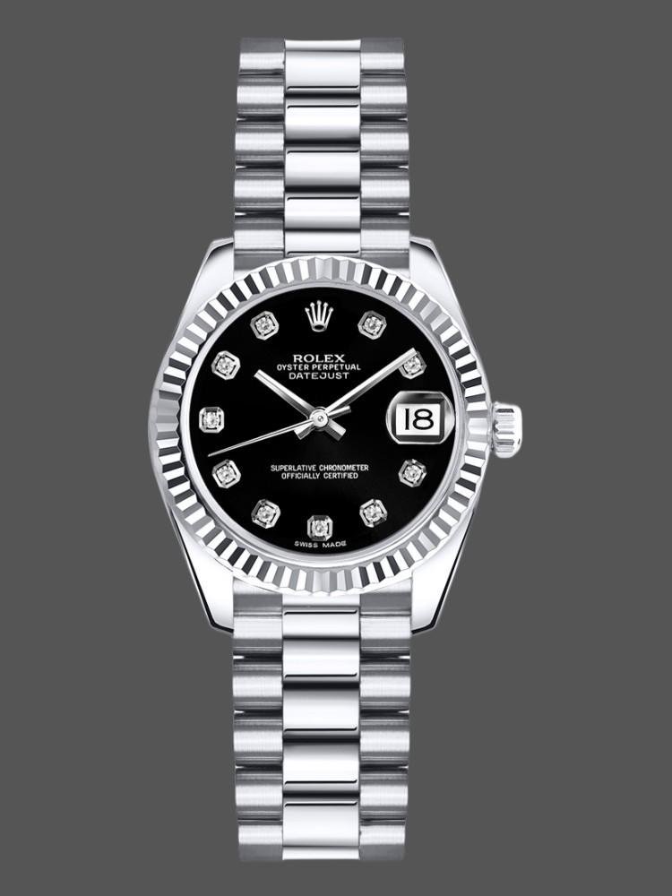 Rolex Datejust m178274 Women’s Watch Replica Black Diamond Dial Fluted Bezel 31mm