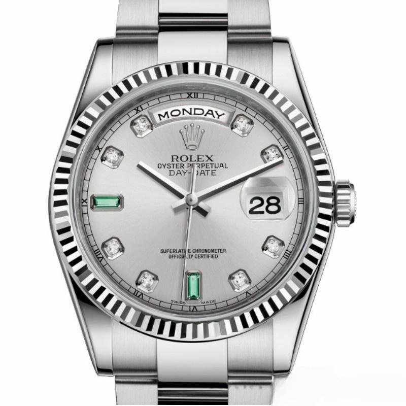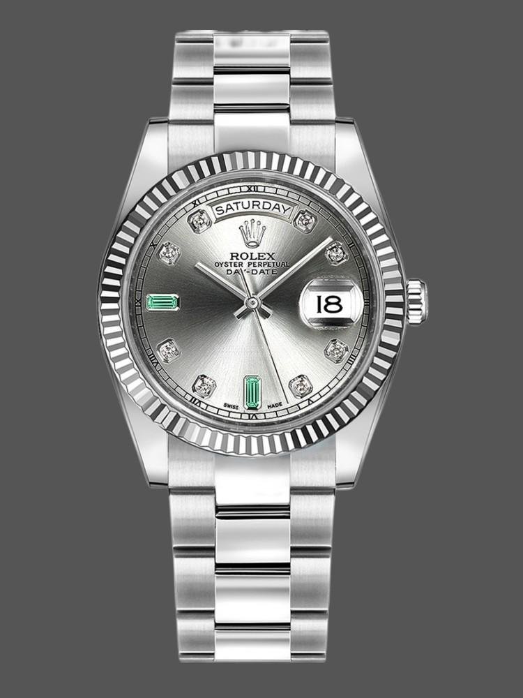 Rolex Day-Date 118239 replica watch, rhodium gray dial, white gold, 36 mm, unisex