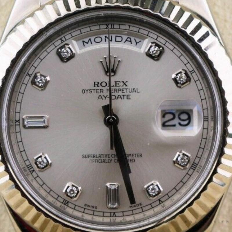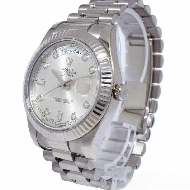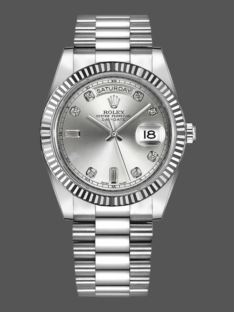 Rolex Day-Date 218239 Men’s Watch Replica Silver Dial with Diamonds, White Gold, 41mm