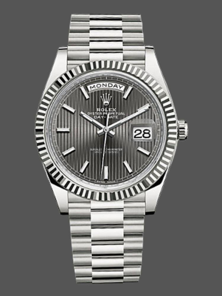 Rolex Day-Date 228239 Men’s Watch Replica Dark Rhodium Gray Dial Fluted Bezel 40mm