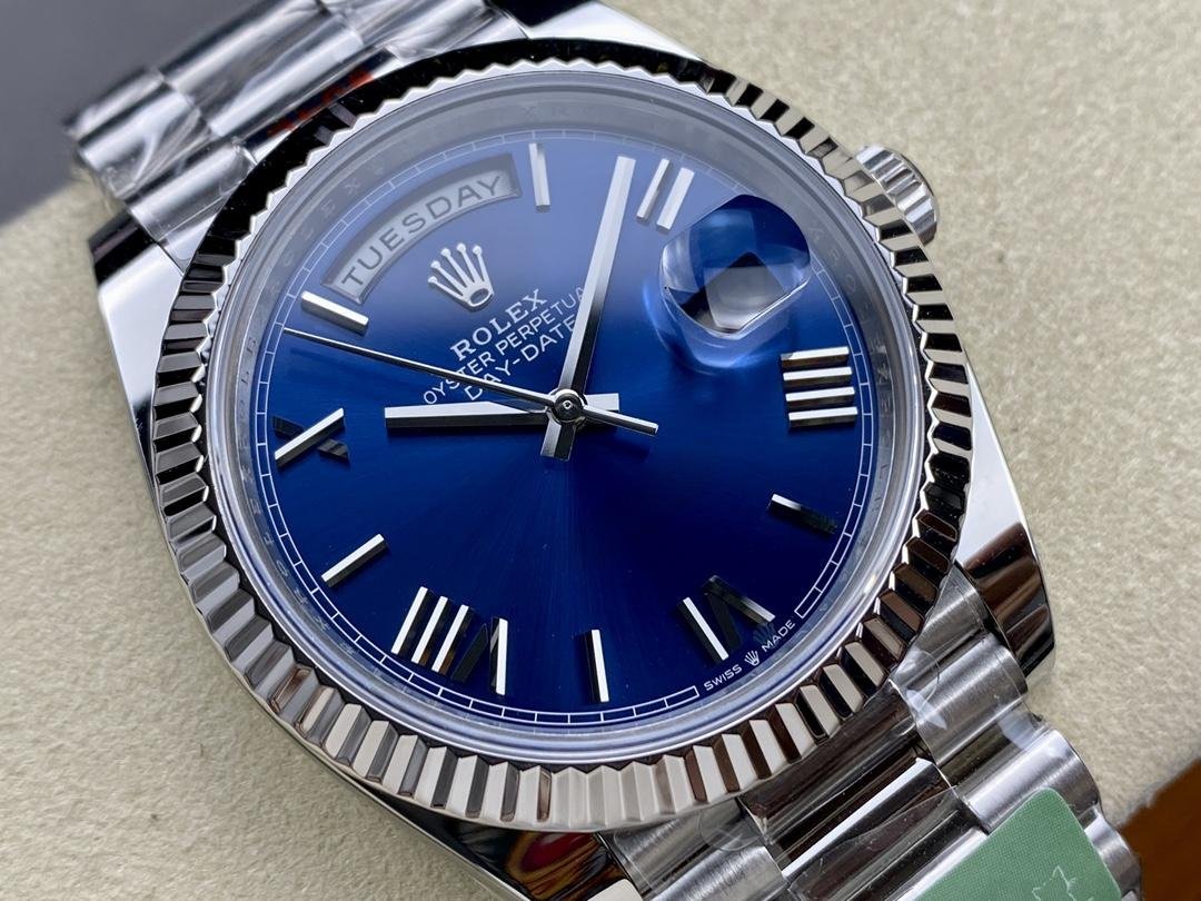 Rolex Day-Date 228239 Men’s Watch Replica Blue Roman Dial Fluted Bezel 40mm
