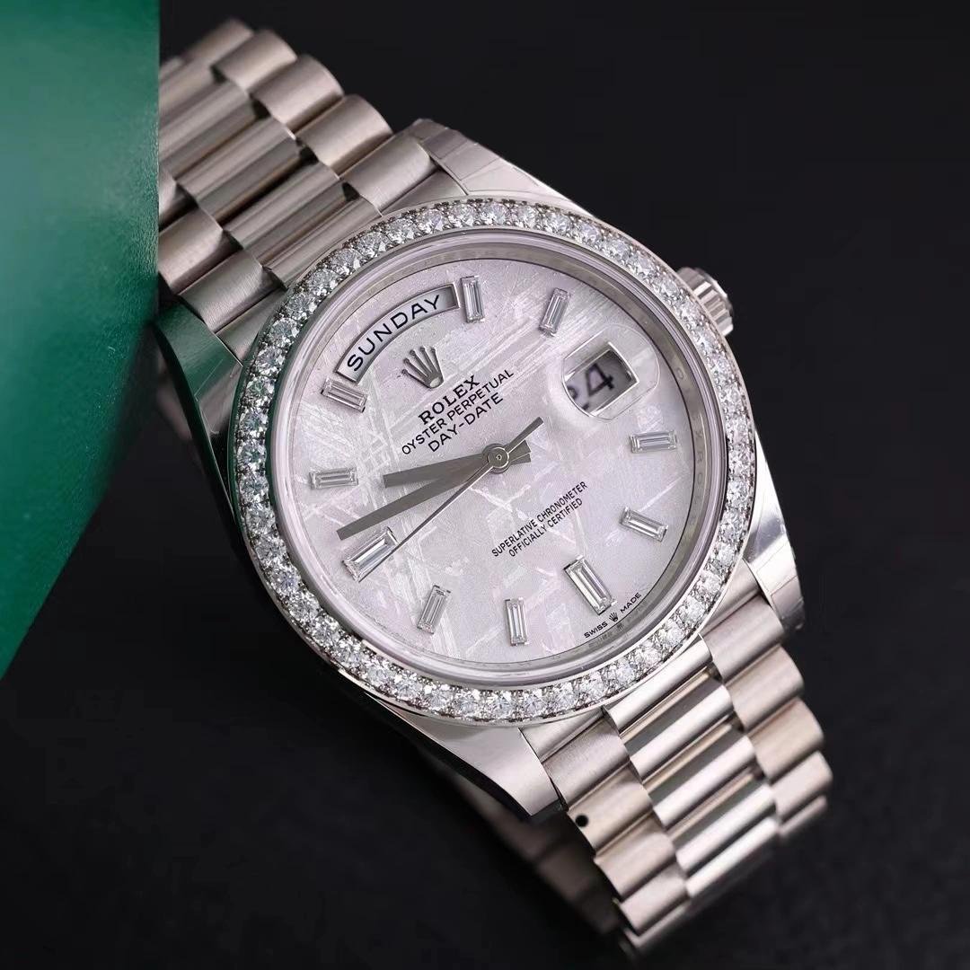 Rolex Day-Date 228349RBR Men’s Replica Watch Meteorite Dial Diamond Bezel 40mm