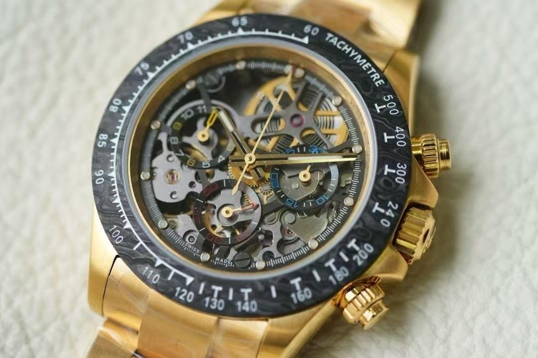 Replica of the Rolex Daytona 116508 Artisans watch by Gen??ve with skeletonized dial and steel case