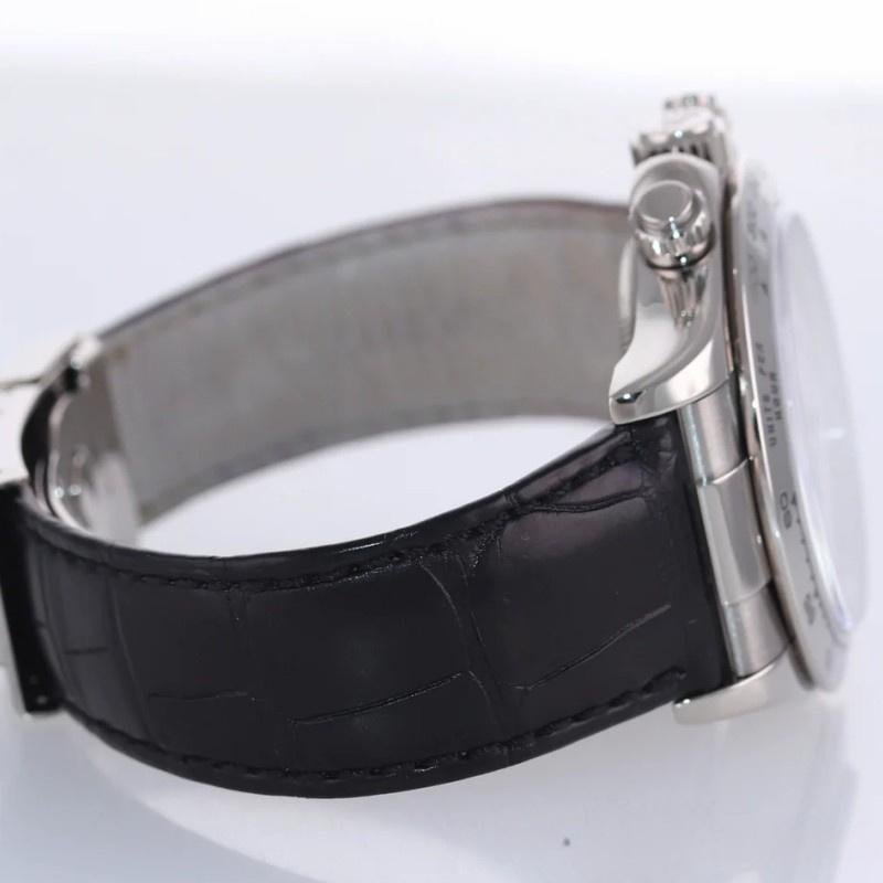 Rolex Daytona 116519 replica watch for men with 40 mm Arabic dial and mother-of-pearl. 40mm white gold case, bezel, rope mechanism and folding clasp. Mother-of-pearl dial with hour markers in Arabic numerals. Minute markers around the outer edge. 30 minute counter at 3 o’clock, 60 second counter at 6 o’clock, 12 hour counter at 9 o’clock. Black leather and sapphire crystal strap.