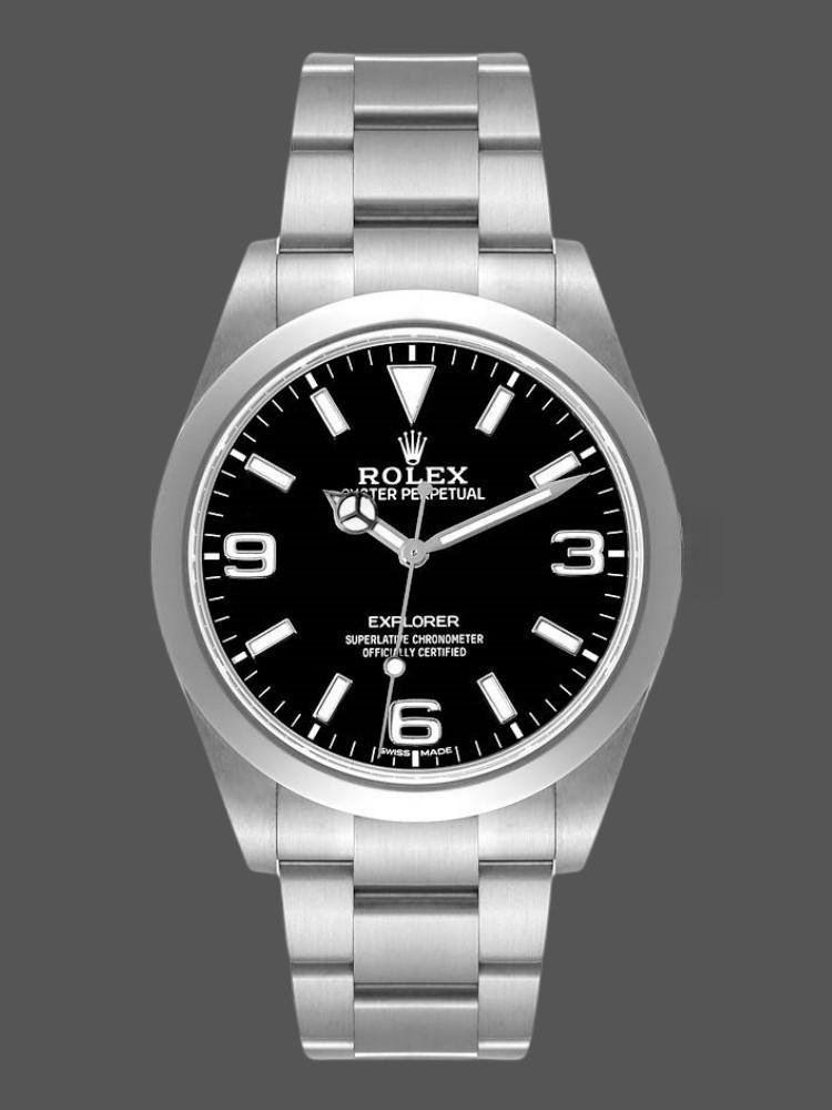 Rolex Explorer 214270 Men’s Watch Replica Black Luminous Dial Stainless Steel 39mm