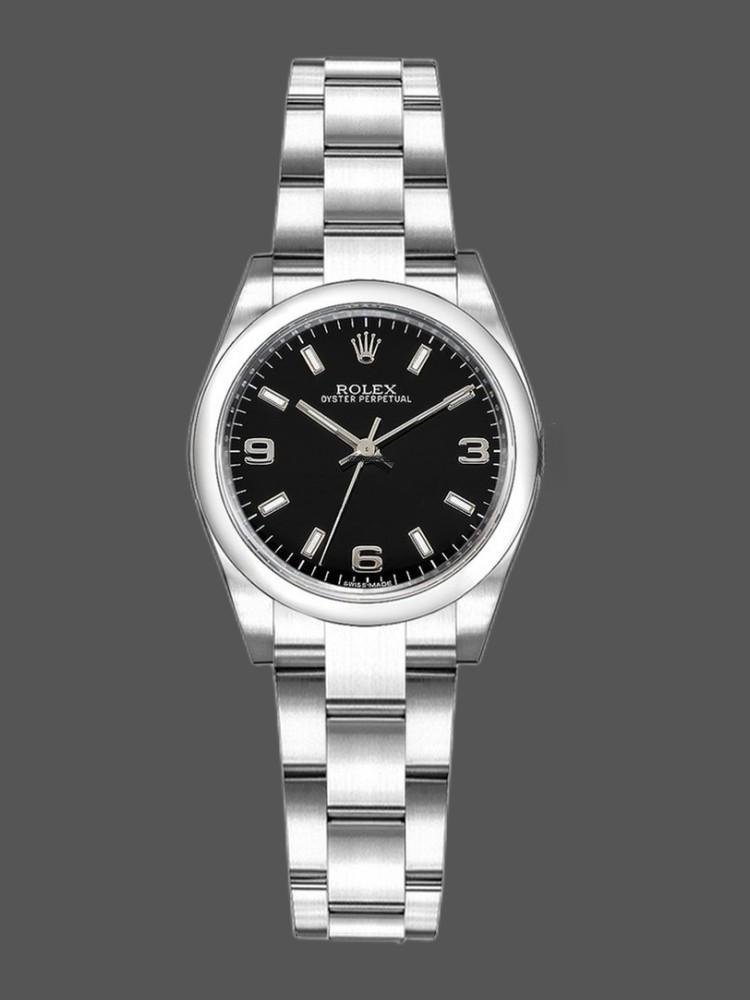 Replica Rolex Oyster Perpetual 176234 Women’s Watch, Fluted Bezel, Black Arabic Dial, 26mm