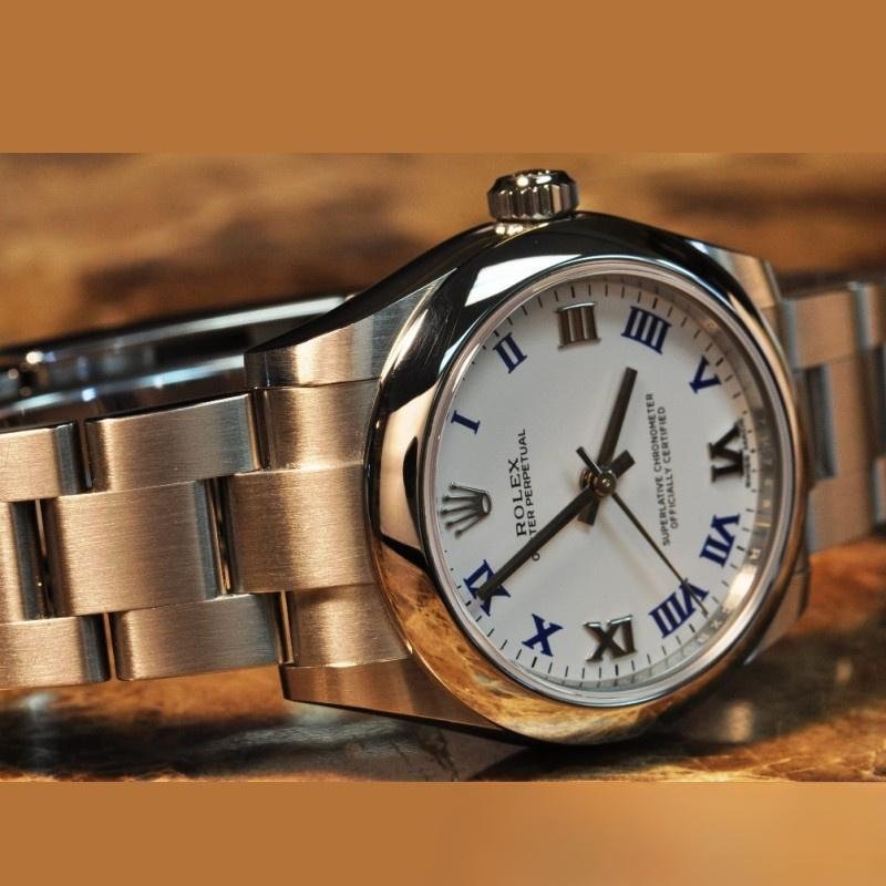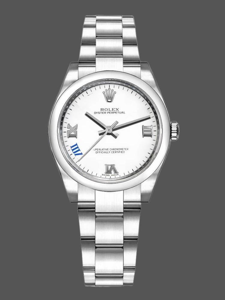 Replica Rolex Oyster Perpetual 177200 Women’s Watch White Dial Roman Blue Oyster Bracelet 31mm