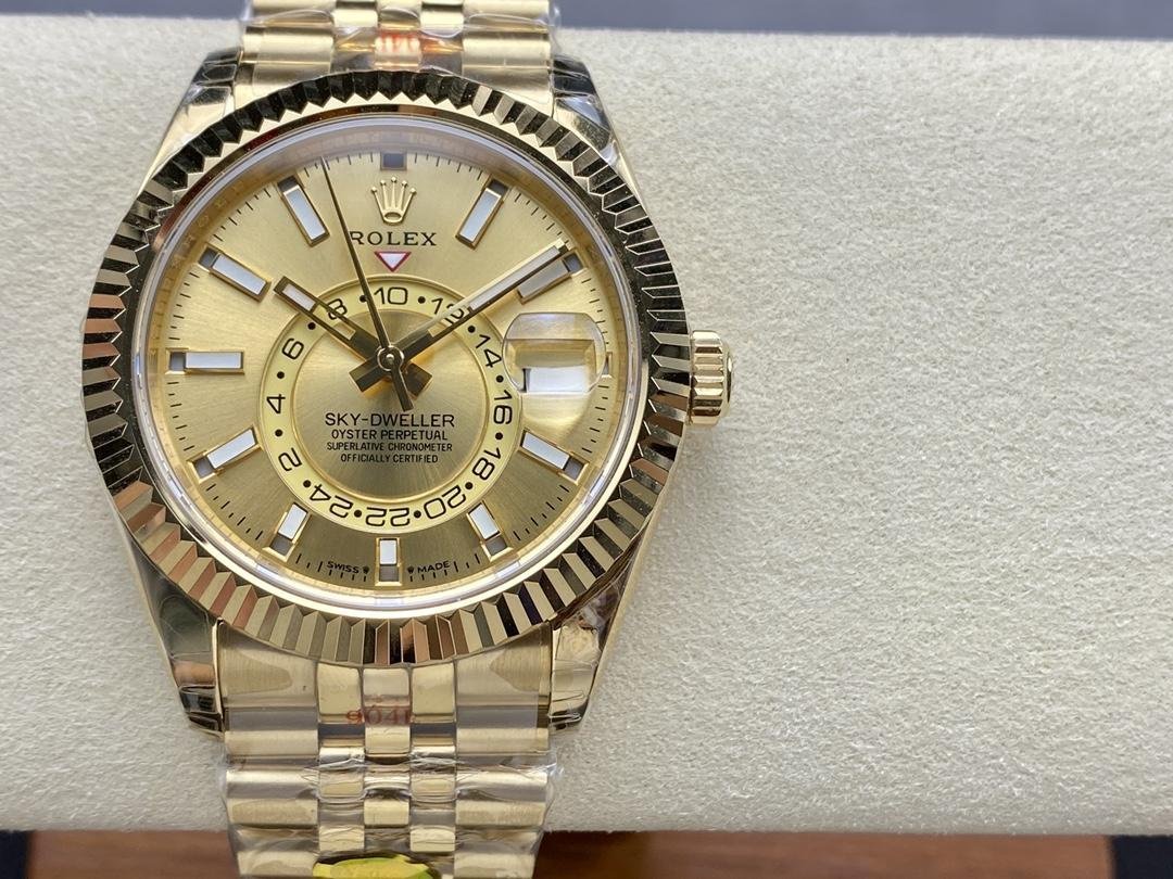 Rolex Sky-Dweller m336938-0004 men’s replica watch, yellow gold, champagne dial, 42 mm