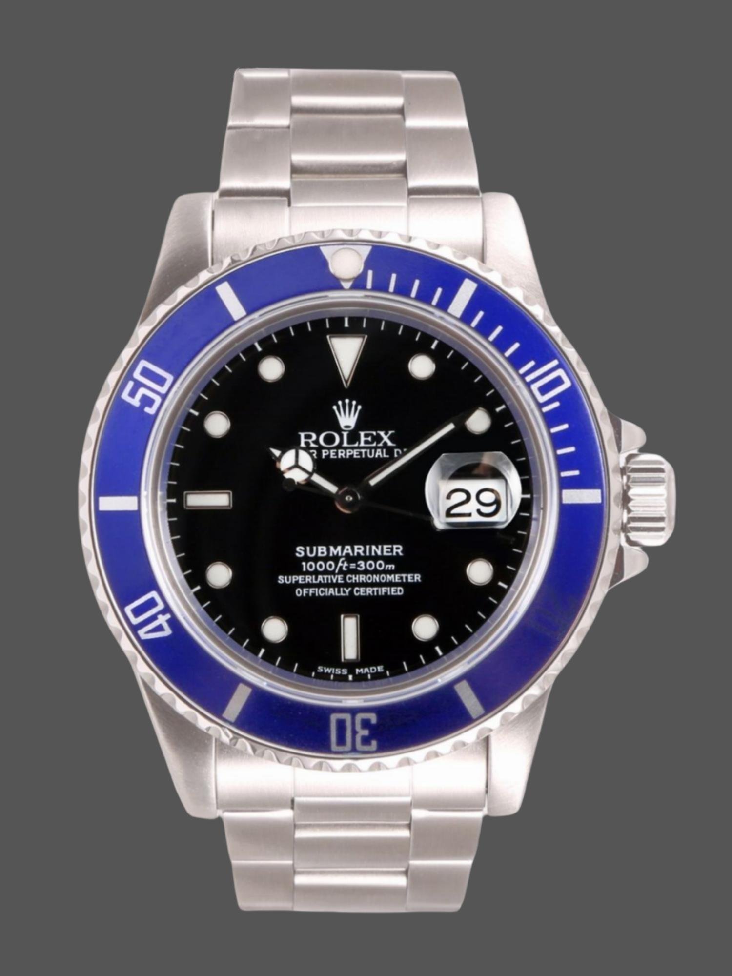 Rolex Submariner Date 16610 Men’s Replica Watch, Blue Ceramic, Black Dial, 40mm