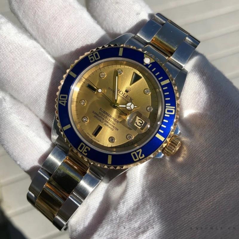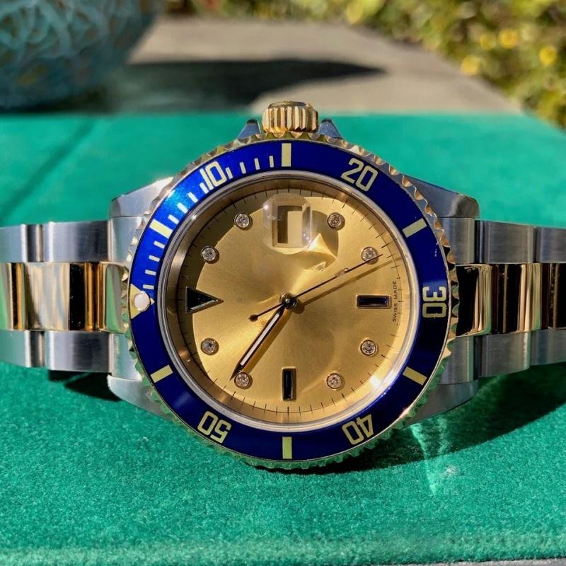 Replica Rolex Submariner Date 16613 men’s watch, champagne-colored Serti dial, 40 mm