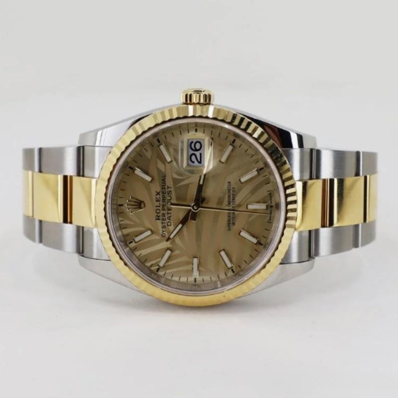 Replica of the unisex Rolex Datejust 126233 watch with gold dial and 36 mm palm tree motif