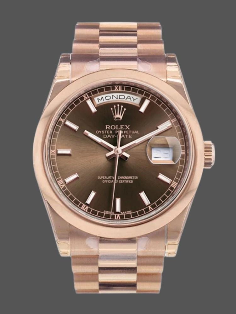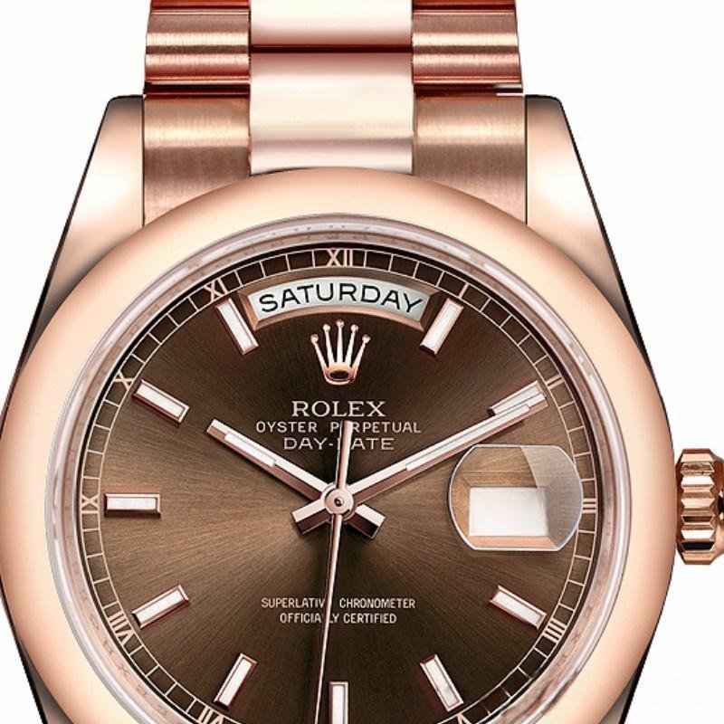 Replica of the unisex Rolex Day-Date 118205 watch, 36 mm chocolate and rose gold dial