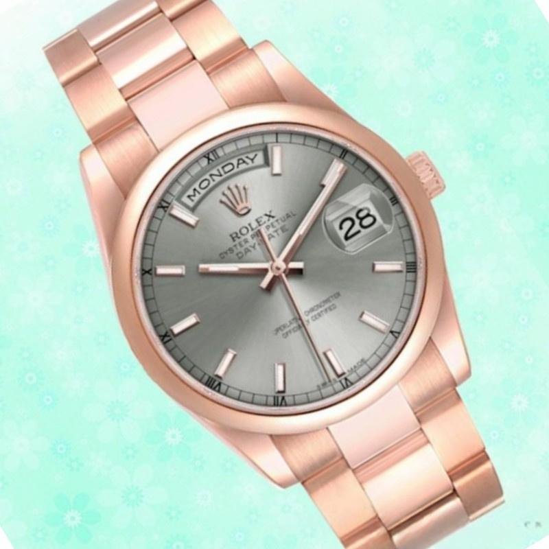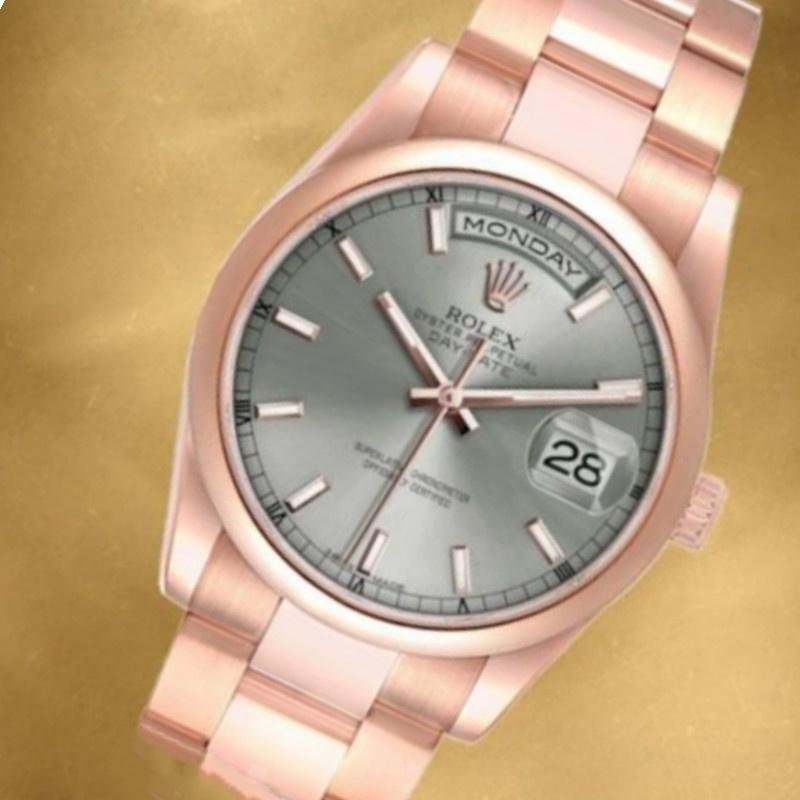 Replica of the unisex Rolex Day-Date 118205 watch, gray dial and 36 mm rose gold
