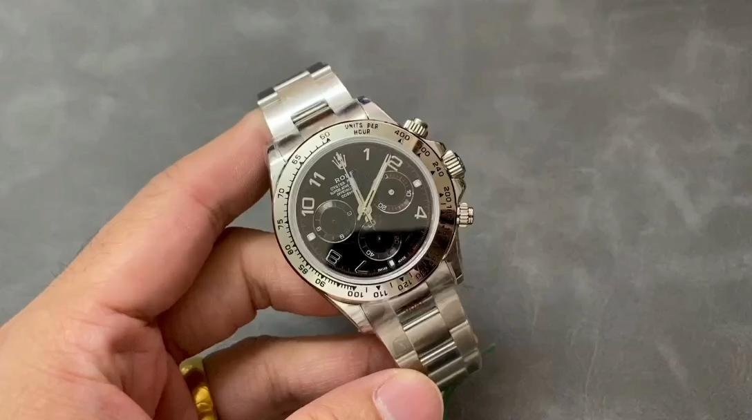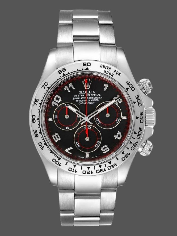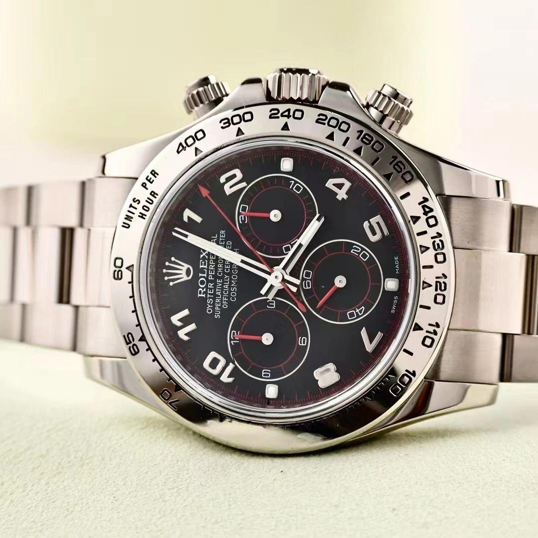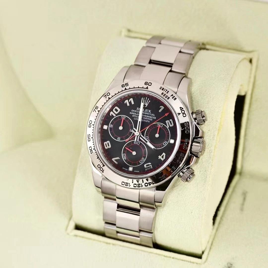 Replica Rolex Cosmograph Daytona 116509 for men, black Arabic dial, white gold, 40 mm