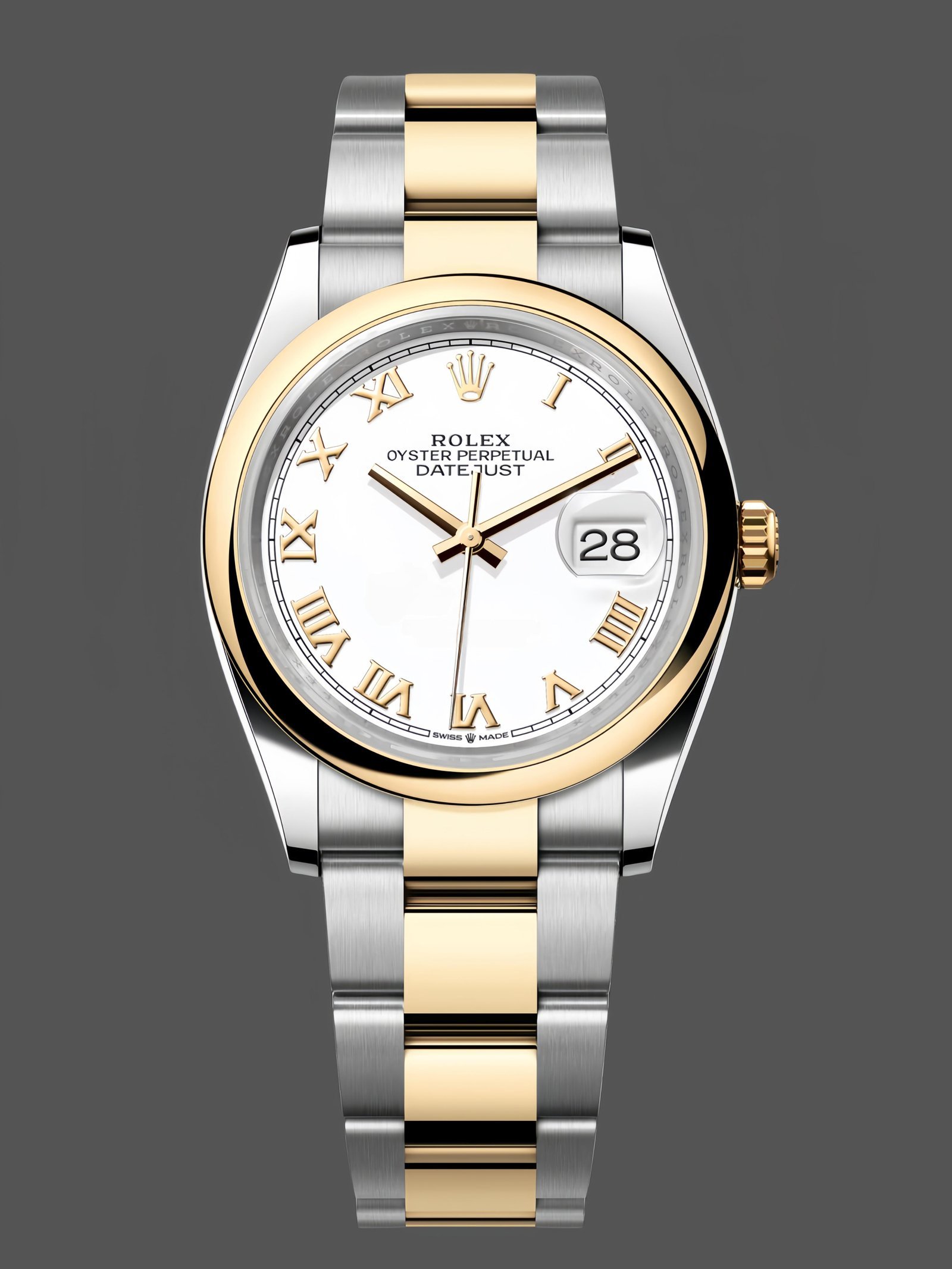 Replica of the Rolex Datejust 36 with white dial and Roman numerals 126203 0030