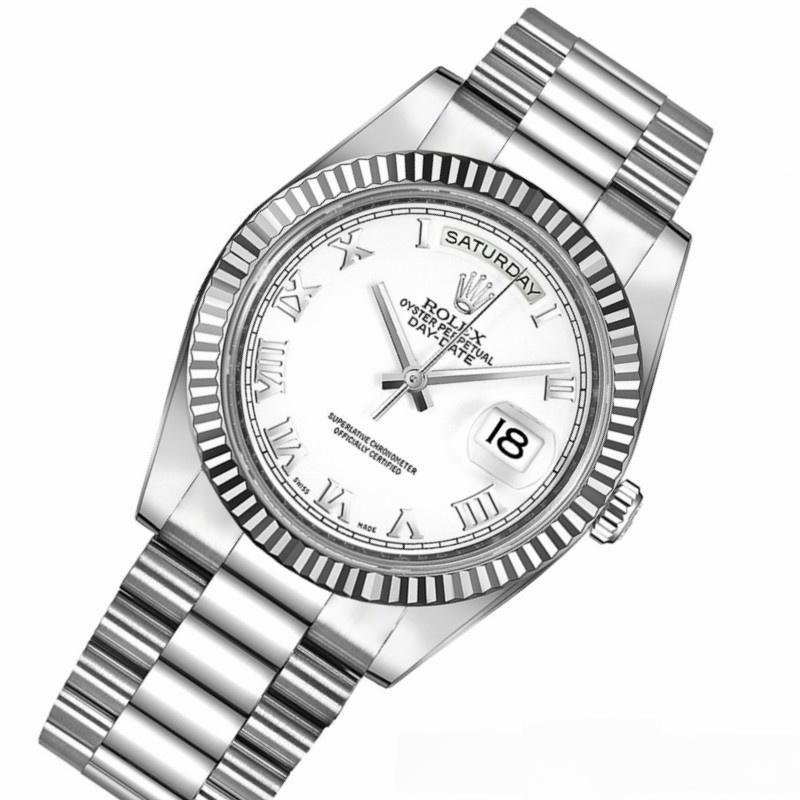 Replica Rolex Day-Date 218239 for men, white dial with Roman numerals, white gold, 41 mm