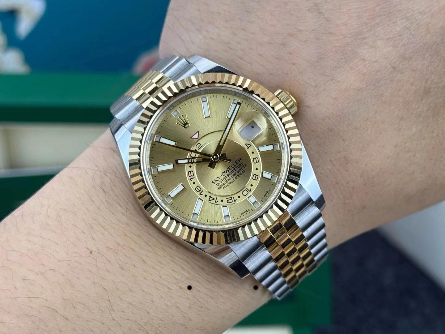 Rolex Sky-Dweller 326933 Replica Men’s Stainless Steel Yellow Gold Champagne Dial 42mm