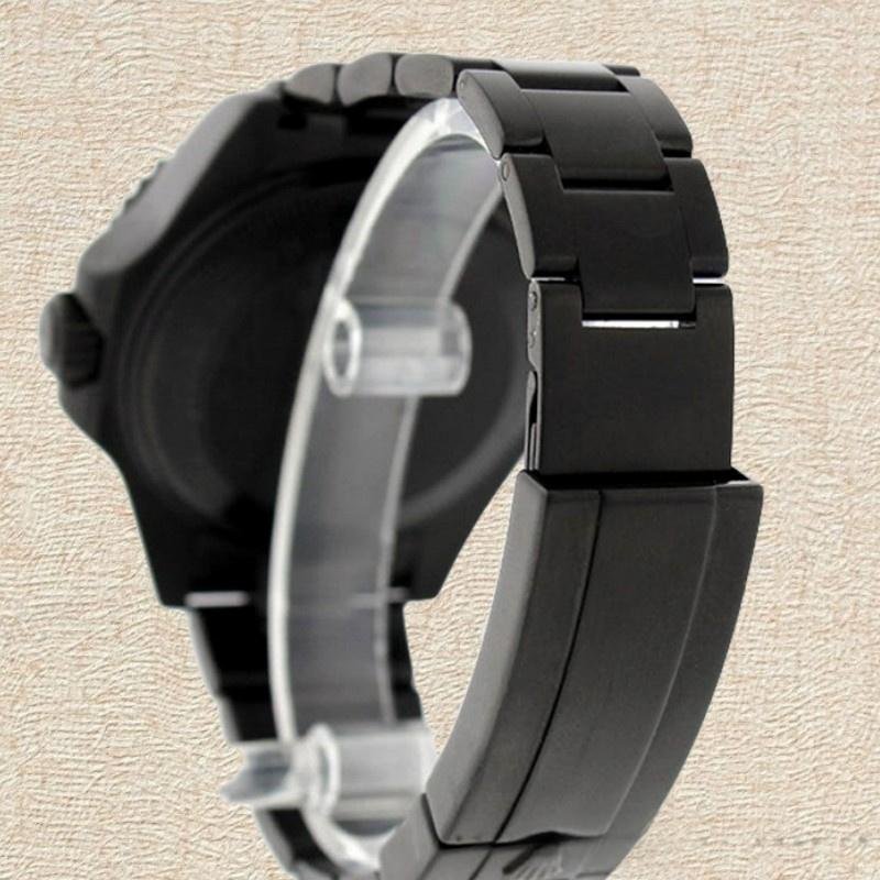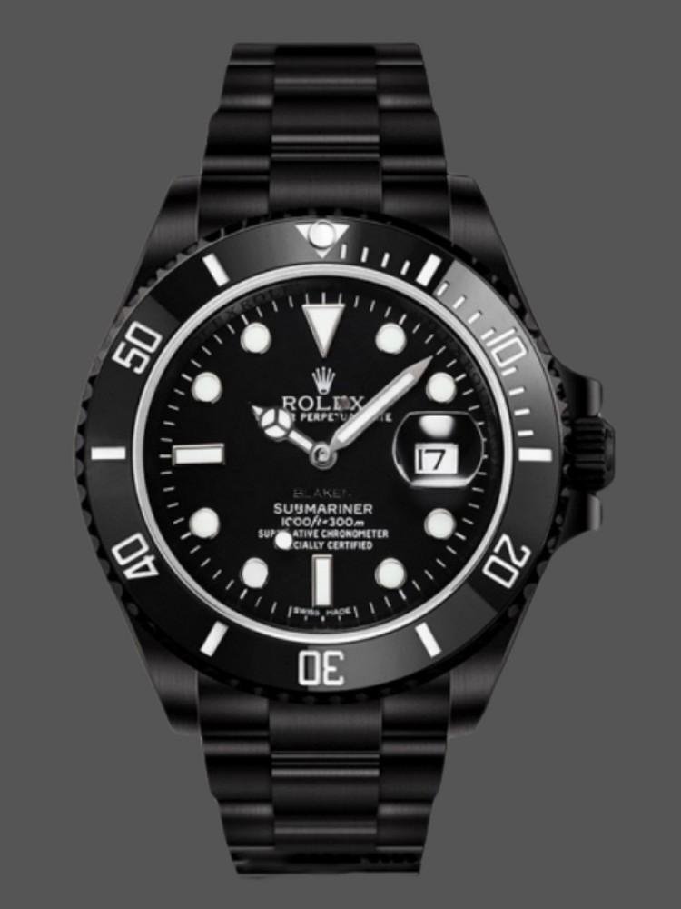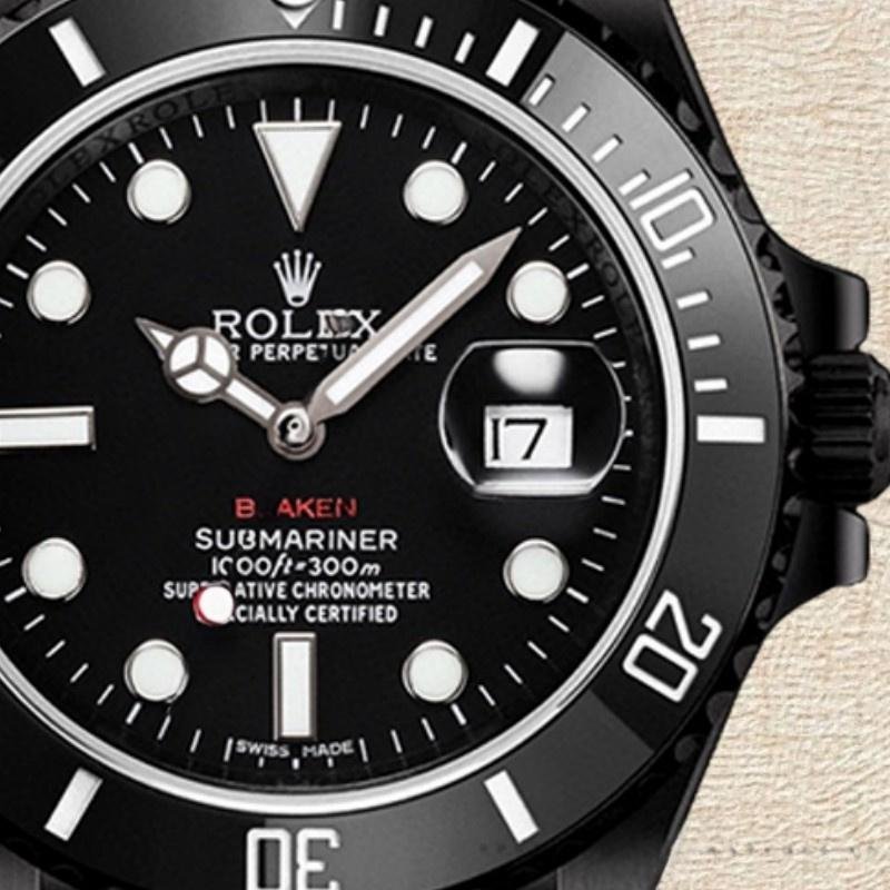 The Rolex Submariner 116610, men’s replica, with 40 mm black dial, it features a 40mm round stainless steel case, screw-down crown and ceramic bezel. Custom black dial with hour markers with luminescent dots. Recorded 60-minute scale and graduations on the bezel. Numbers, date window with magnifying glass at 3 o’clock, sapphire crystal, unidirectional rotating bezel. The reliable DLC/PVD coated stainless steel Rolex Oyster bracelet will look perfect on your wrist.
