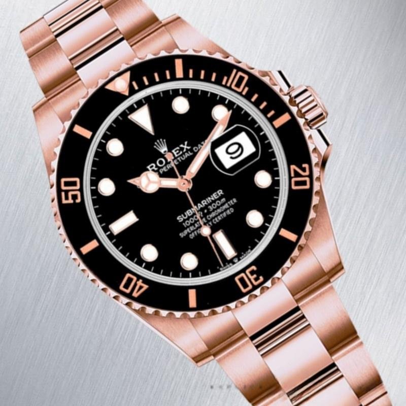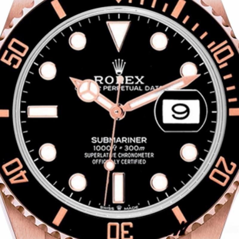Rolex Submariner 126605 Automatic, Black Dial, 41 mm, Replica, Men’s Watch. 41mm stainless steel case. Everose gold two-way swivel bezel. Black dial with hourly indexes. Minute markers around the outer edge. Date display at 3. Everose stainless steel and gold Oyster bracelet with Oysterlock safety clasp.