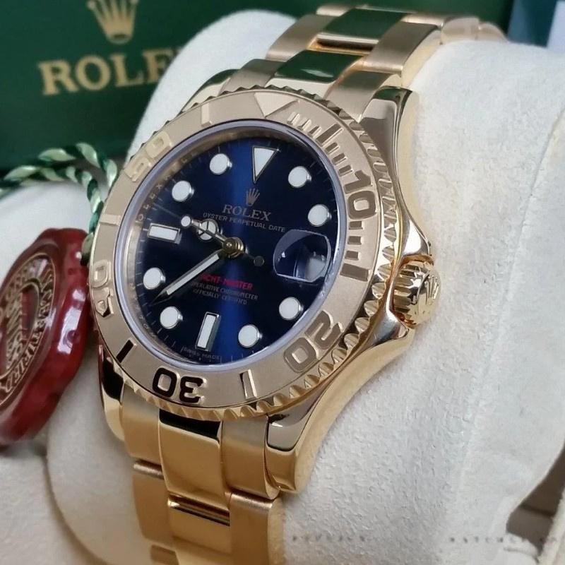 Rolex Yacht-Master 169628 Women’s Replica Watch Blue Dial Yellow Gold Case 29mm 29mm Rotating Yellow Gold Bezel with Time-Lapse. Blue dial with yellow gold Mercedes logo, sword-shaped and Breguet-style hands, and luminous hour indices. Minute trees on the outer edge. Date at 3. The reliable yellow gold Oyster bracelet will look great on your wrist.