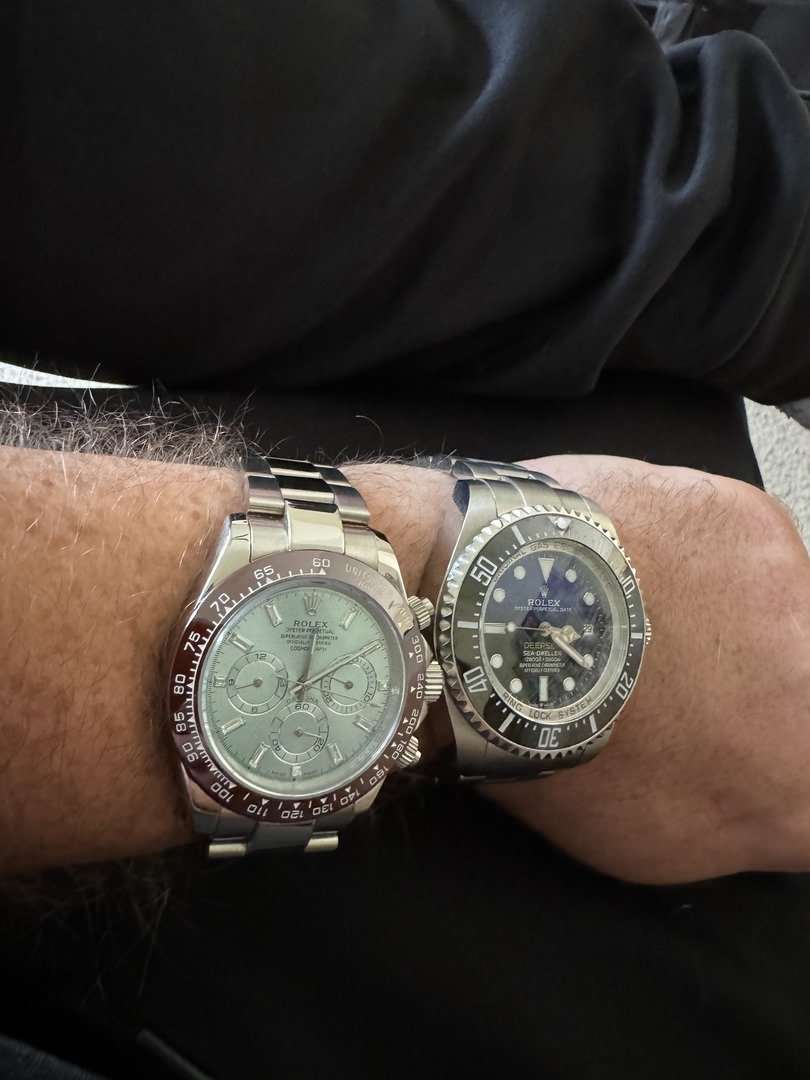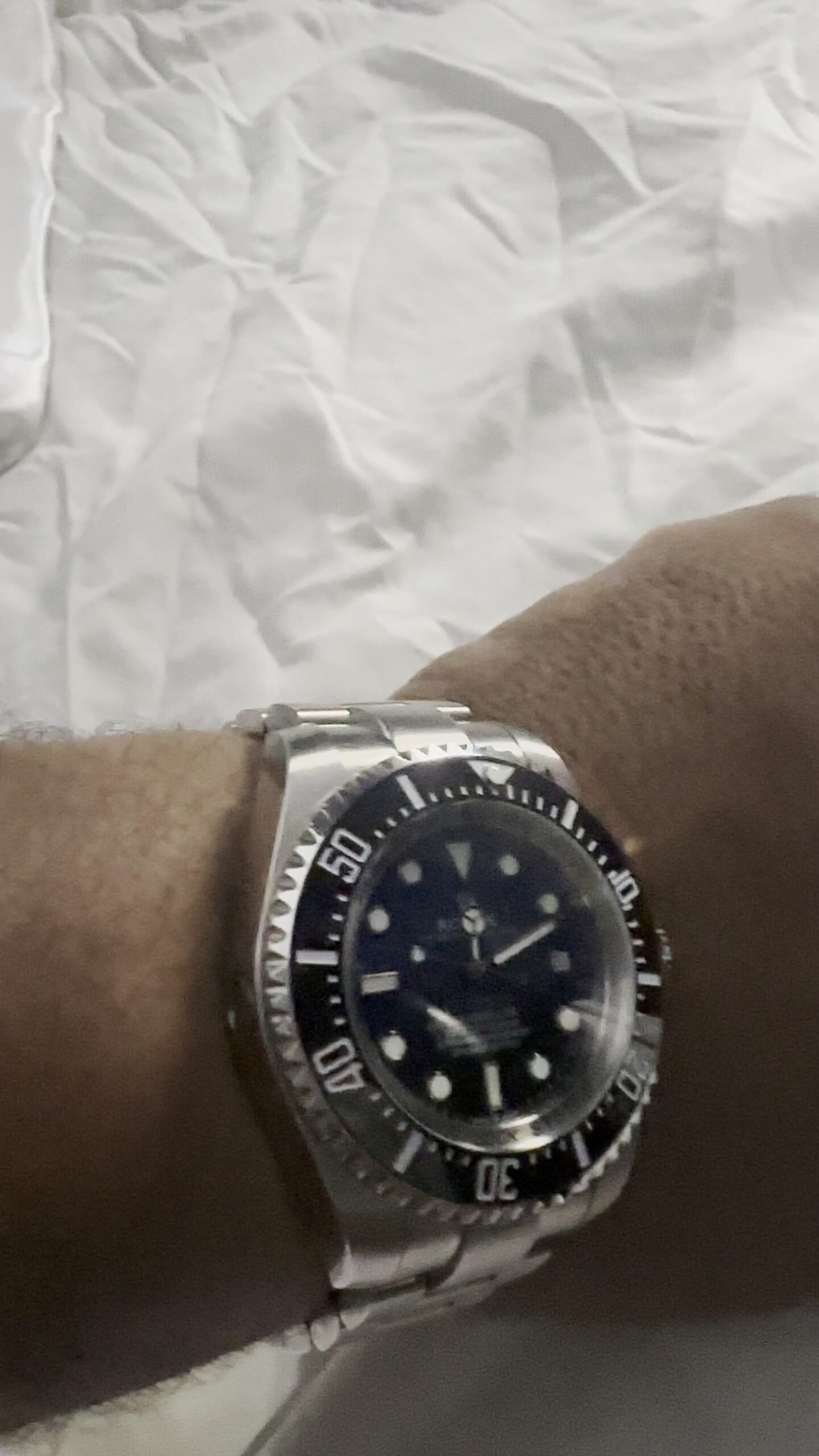 Es tan bueno que es una réplica. Me encantaría un Submariner de 40 mm con este tipo de esfera. Tendré que optar por un Submariner normal con esfera azul. ¡Probablemente me regalen este Deepsea!