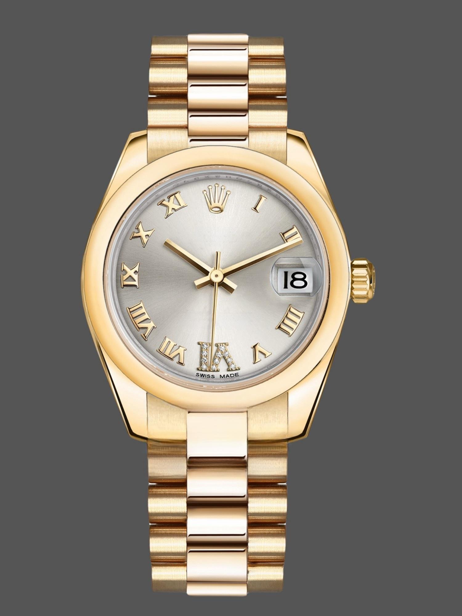 Rolex Datejust 31 Silver VI Diamond Dial Reloj de oro amarillo de 18 quilates 178248