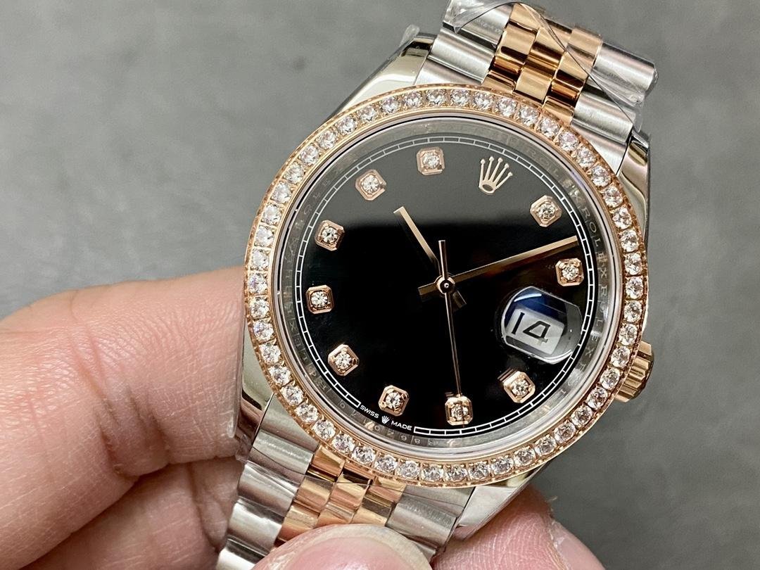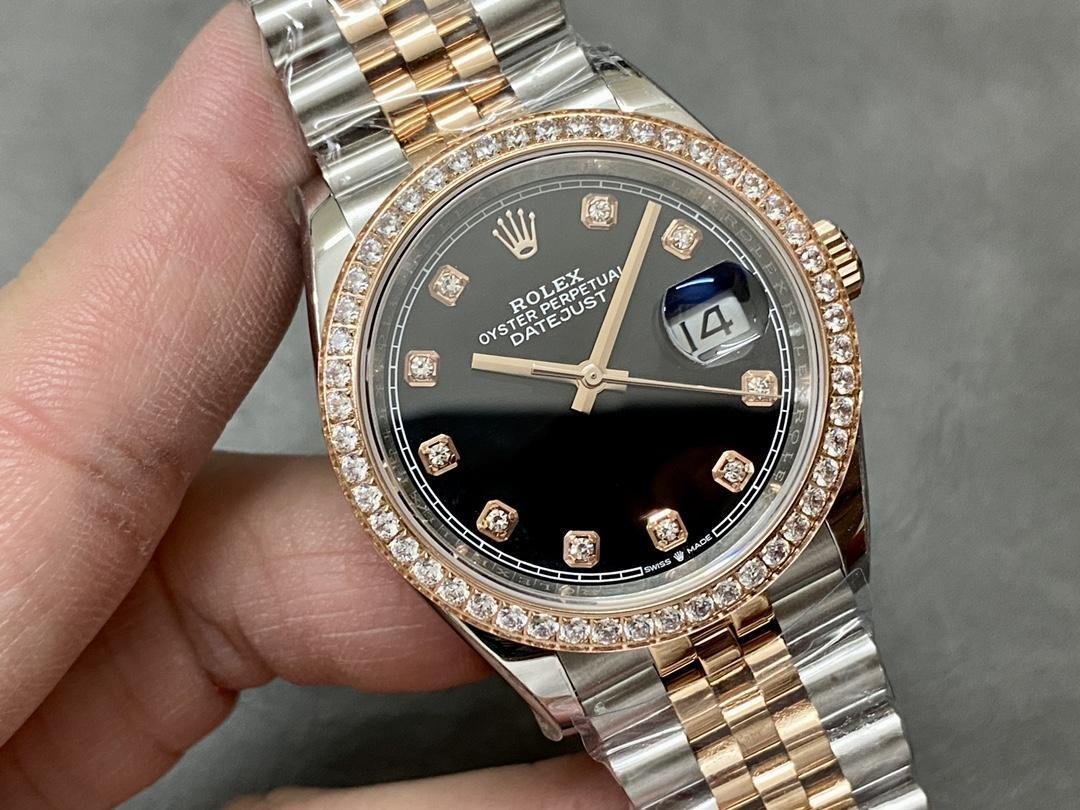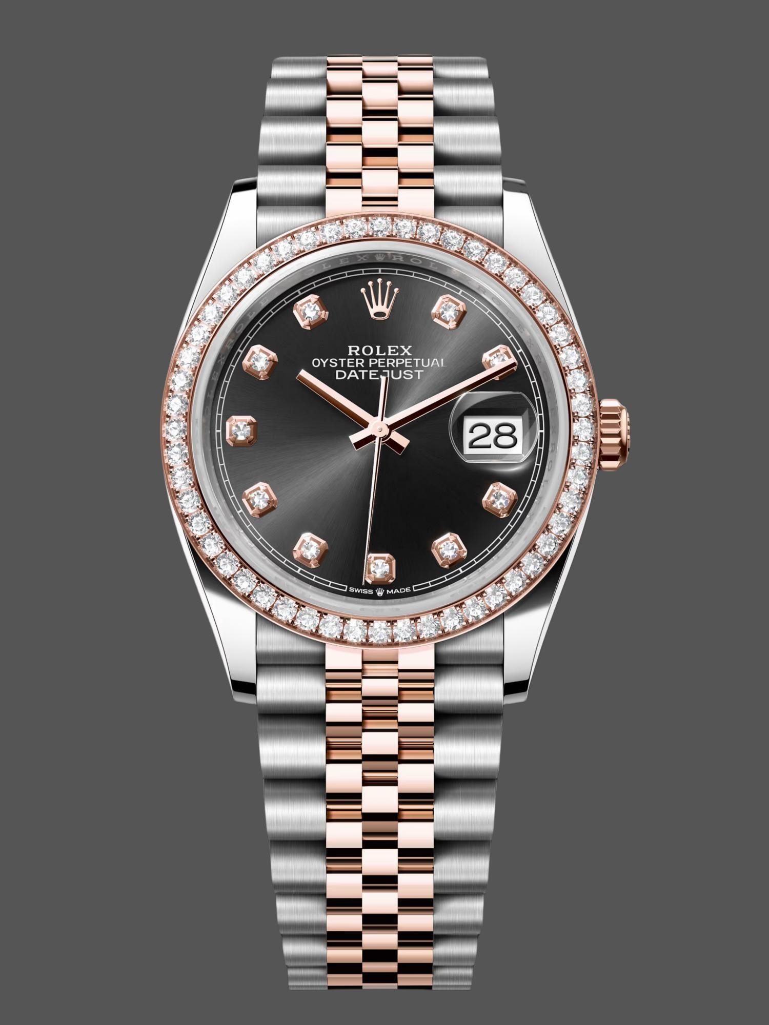 Rolex Datejust 36 steel and Everose gold, black dial, diamond bezel m126281rbr 0007