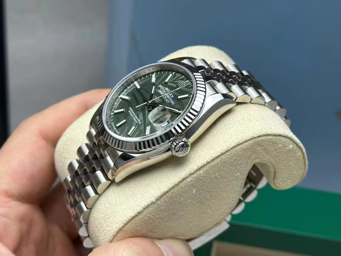 Rolex Datejust 36mm Fluted Bezel Green Palm Indexed Dial Jubilee 126234 0047