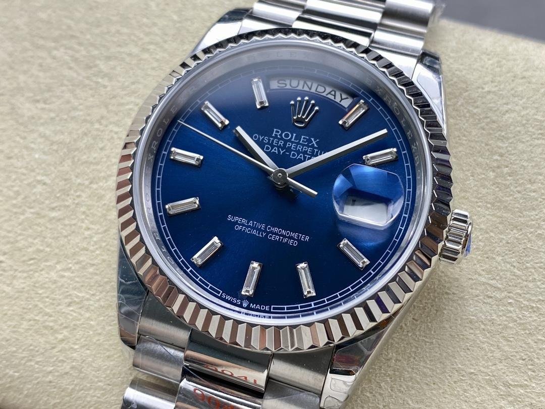 Rolex Day Date 36 mm Esfera azul brillante con diamantes engastados Bisel con diamantes engastados m128396tbr 0024 SaleLimited