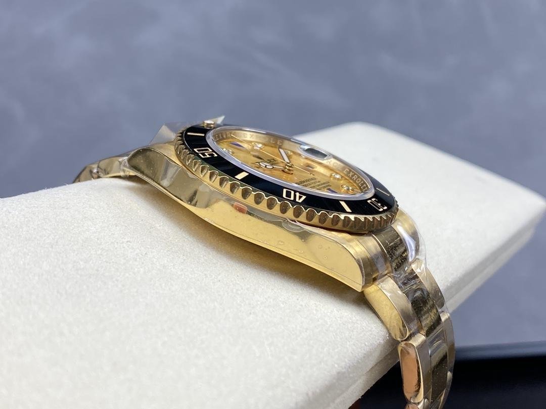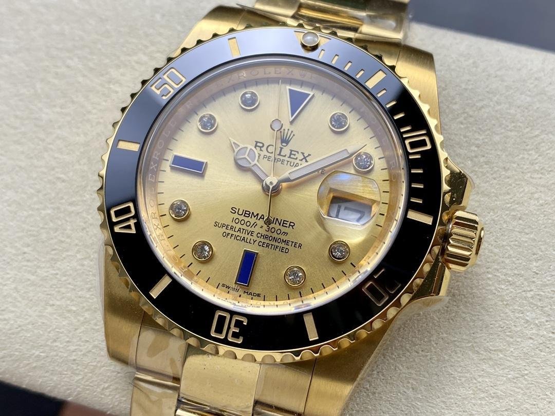 Rolex Submariner 40, esfera de diamantes color champán de 18 quilates, bisel negro, oro 16613T